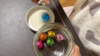 最近はお昼寝時間も短くなった娘っち👧✨ 雨の日は外で遊べないのでお家遊び🏠 最近はリトミックで娘っちがお気に入りだった鈴を瓶から出したり、入れたりする遊びが大ヒット中👍💖 夢中で蓋を回して、鈴の音を聞いて、自分工夫して遊んでいます♬ 材料は...