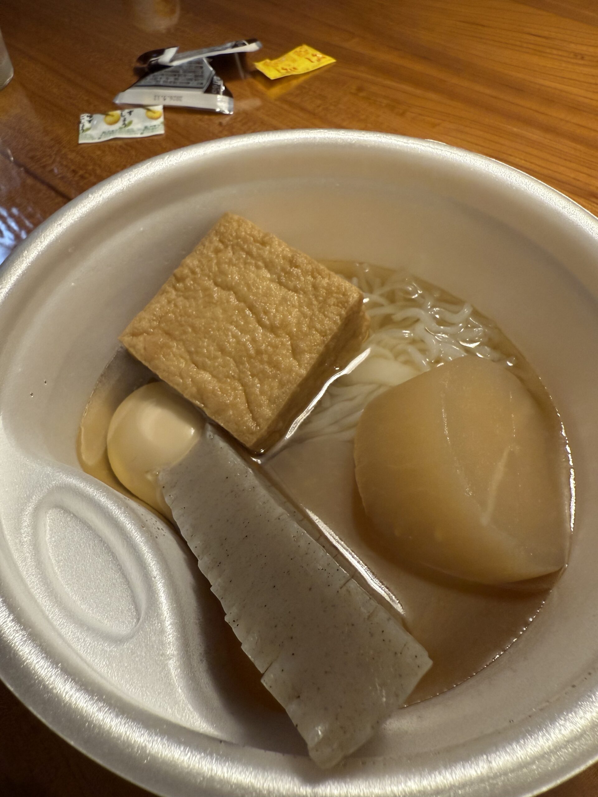 お父ちゃん(主人)がコンビニおでんを買ってきてくれて、冷たく冷えた心が温まった母ちゃんです♡